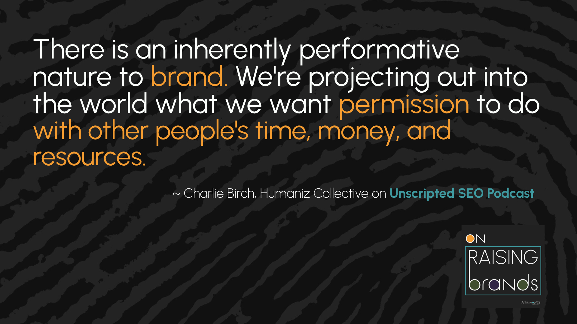 "There is an inherently performative nature to brand. We're projecting out into the world what we want permission to do with other people's time, money, and resources."